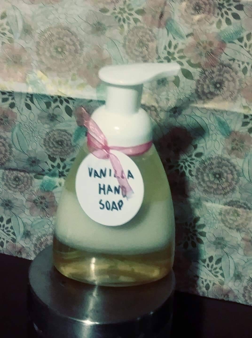 All natural foaming soap. Contains Shea butter soap, aloe Vera, honey, and rosewater.